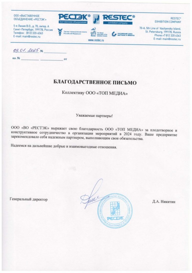 ОтзывыГлавная / ОтзывыКомпания ТОП МЕДИА всегда стремится выполнить свою работу качественно и точно в оговоренные сроки. Наша самая лучшая награда – это отзывы наших заказчиков.Представляем Вашему вниманию благодарственные письма, написанные нашими дорогими заказчиками: Оставить отзыв Отменить ответВаш адрес email не будет опубликован. Обязательные поля помечены *Отзыв *Имя * Email * Сохранить моё имя, email и адрес сайта в этом браузере для последующих моих комментариев.Срок проверки reCAPTCHA истек. Перезагрузите страницу.